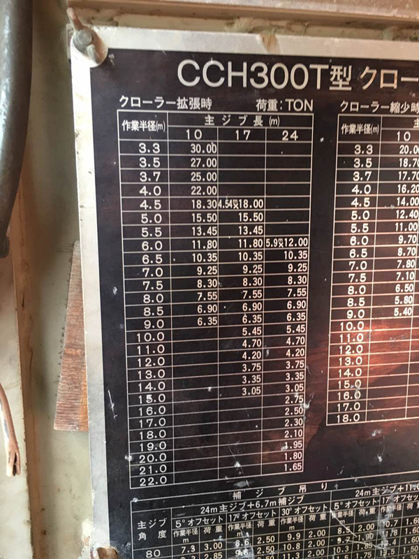 標題:CCH300伸縮臂履帶吊性能表