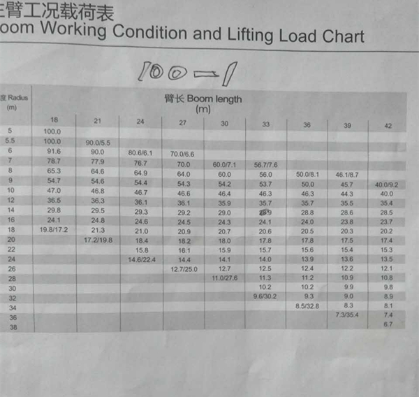 標題:徐工QUY100 履帶起重機性能表