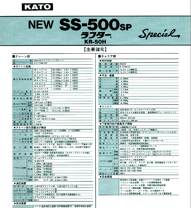 標題:KATO 加藤SS500SP起重機性能表
