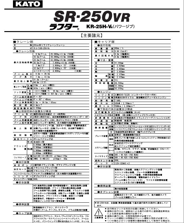 標題:KATO 加藤SR250VR-X-MJ起重機性能表