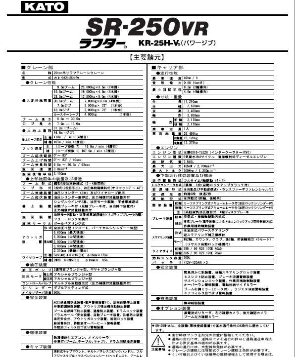 標題:KATO 加藤SR250VR-H-PJ起重機性能表
