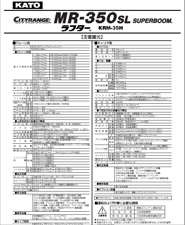 標題:KATO 加藤MR350SL起重機性能表
