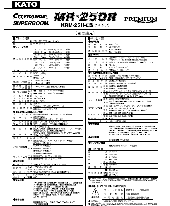 標題:KATO 加藤MR250R起重機性能表