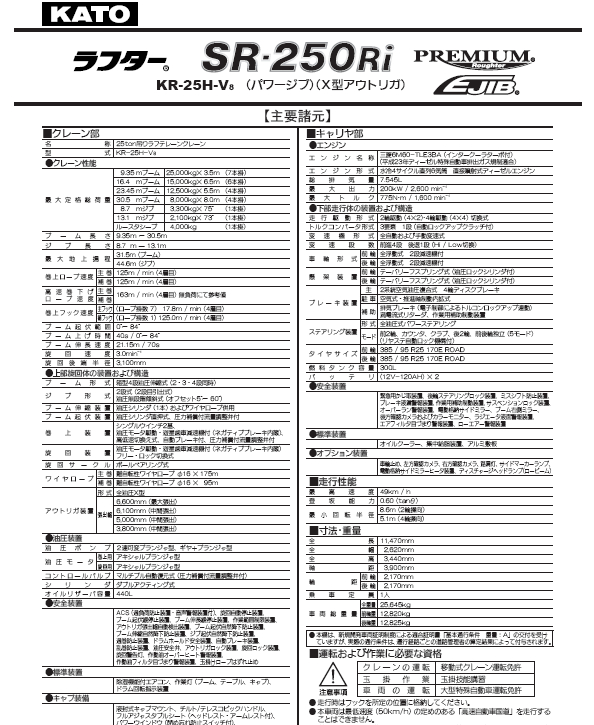KATO 加藤SR250RI起重機性能表