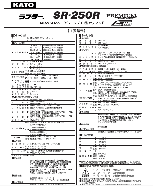 標題:KATO 加藤SR250R-H起重機性能表