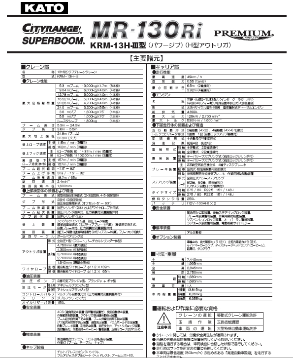標題:KATO 加藤MR130RI-H起重機性能表