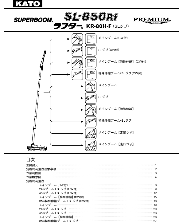 標題:KATO 加藤SL850RF起重機性能表